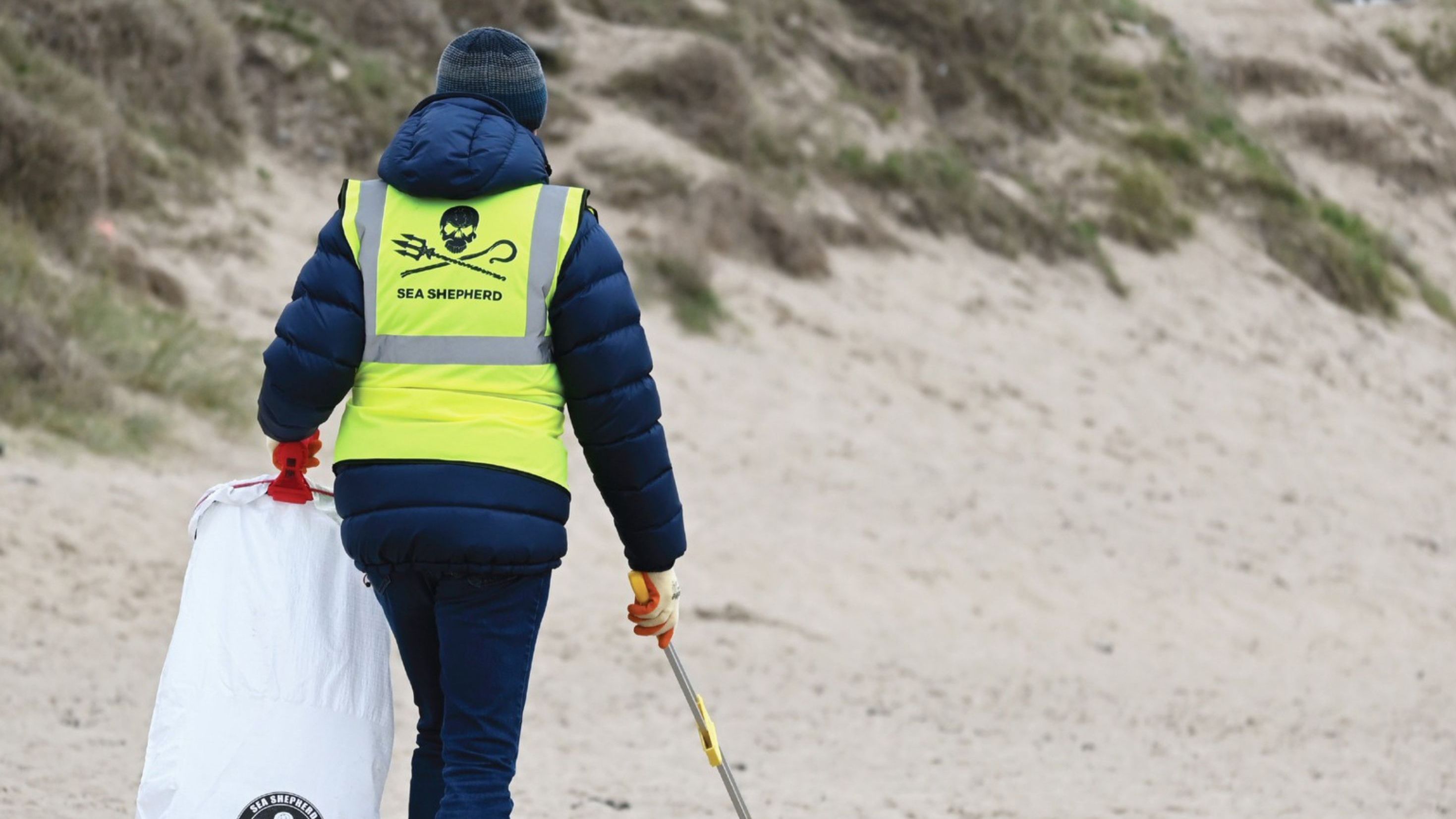 I introduce myself to Pam Jones, a bubbly 68-year-old volunteer from Neath. It’s her third time participating in the beach cleanup with Sea Shepherd, and she is eager to get started. I ask her why she has decided to come back.